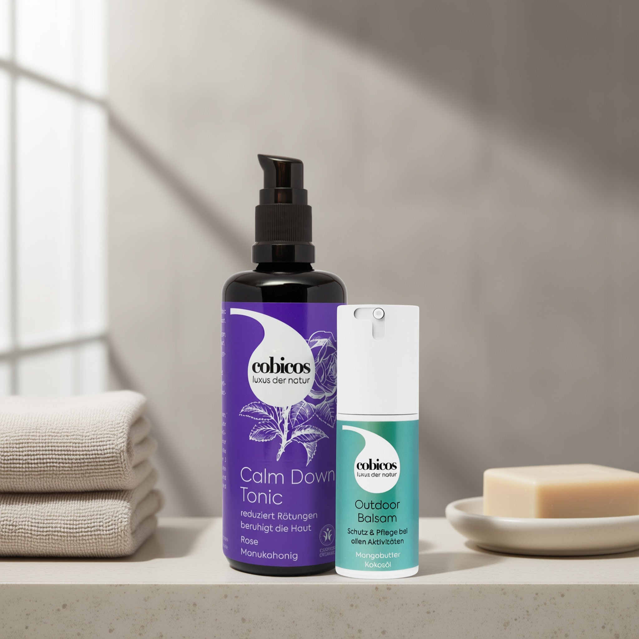 Dieses Set enthält das Calm Down Tonic (100 ml) den Outdoor-Balsam (30 ml) für zuverlässige Pflege und Schutz im Alltag.