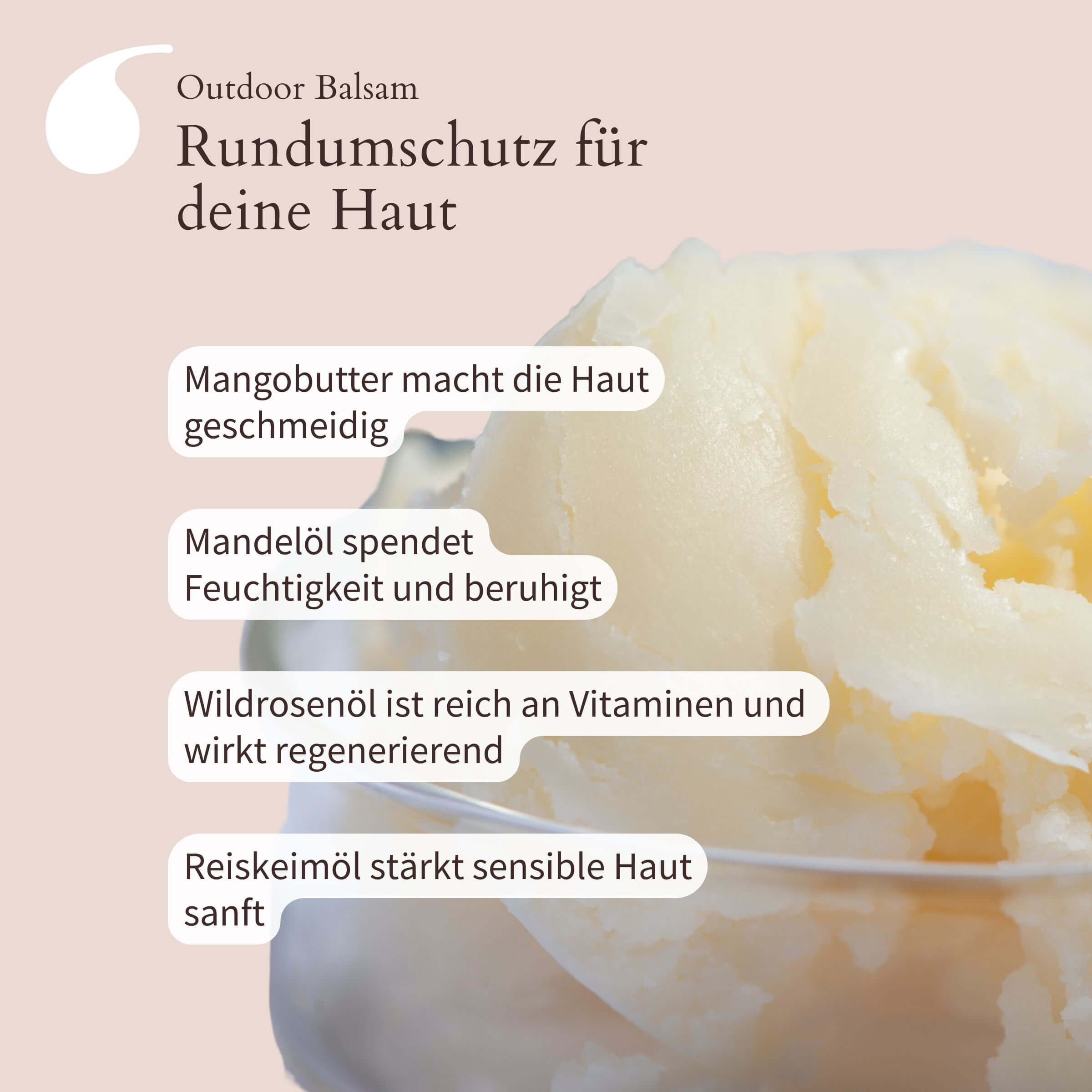 Der Outdoor Balsam ist ein Allroundtalent: zu jeder Jahreszeit und bei vielen Sport- und Freizeitaktivitäten schützt und pflegt er beanspruchte Haut zuverlässig.