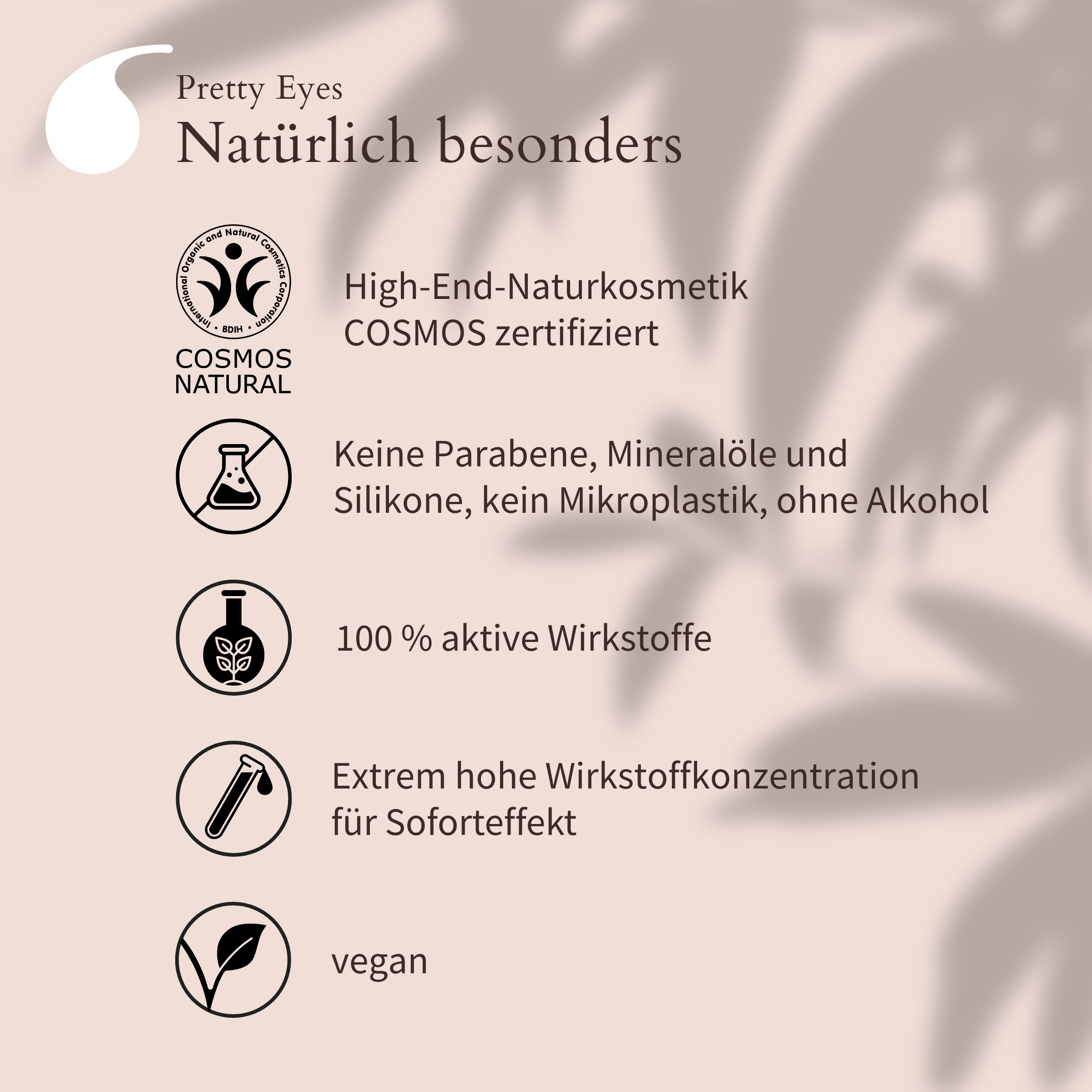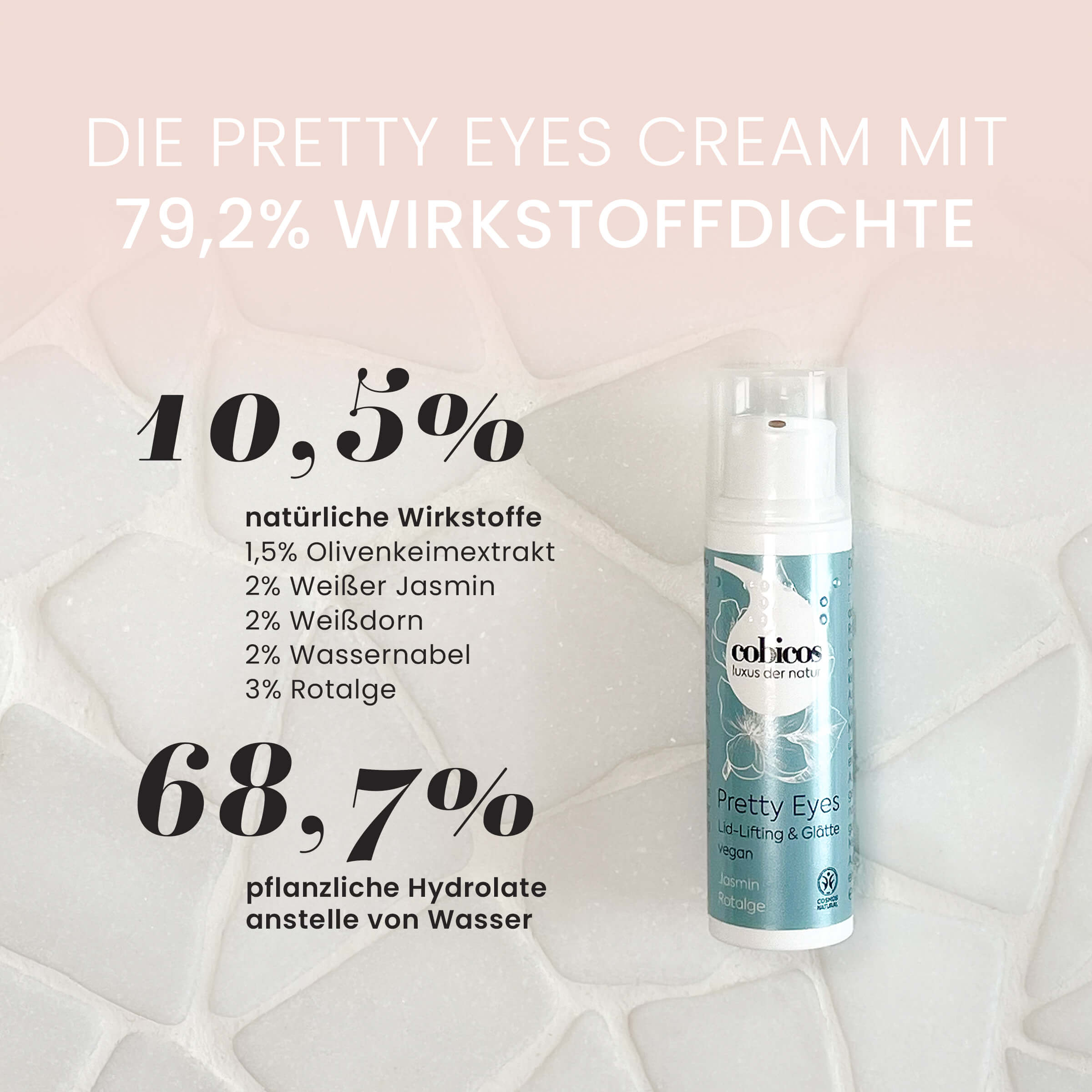 Pretty Eyes ist eine vegane Augen- und Lippencreme mit umfassender Wirkung – für Sie und Ihn. Sie zieht leicht ein, pflegt intensiv und bringt die Augenpartie zum Strahlen.