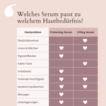 Das Protecting Serum bildet eine antioxidative Schutzhülle für sensible Haut. Es schützt zuverlässig vor oxidativem Stress durch Umweltbelastungen, Feinstaub und schädliche UV-Strahlung – und beugt dabei zugleich Pigmentveränderungen und der Bildung roter Äderchen vor.