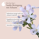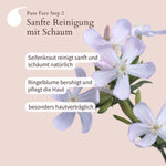 Seifenkraut reinigt sanft und schäumt natürlich, Ringelblume beruhigt die Haut. Pure Face Step 2 besonders hautverträglich.